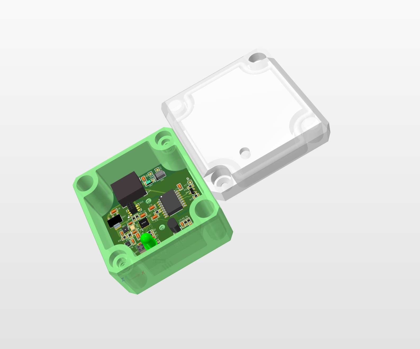 Установлен датчик температуры и влажности с точностью 0,2 градуса и 2% влажности для мониторинга температуры внешней среды и внутренней влажности (герметичности корпуса).